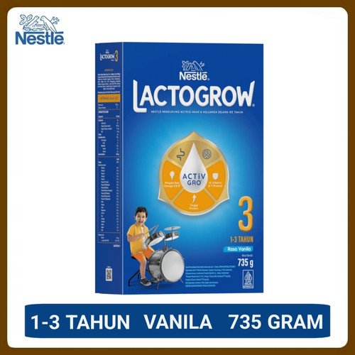 1 DUS ISI 12 LACTOGROW 3 SUSU PERTUMBUHAN DHA+PREBIO 1 BOX 735g
