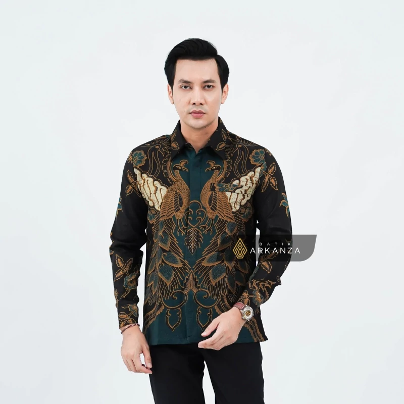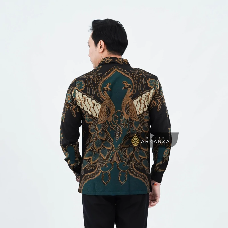 Kemeja Batik Dobby Slimfit Motif Merak Hijau
