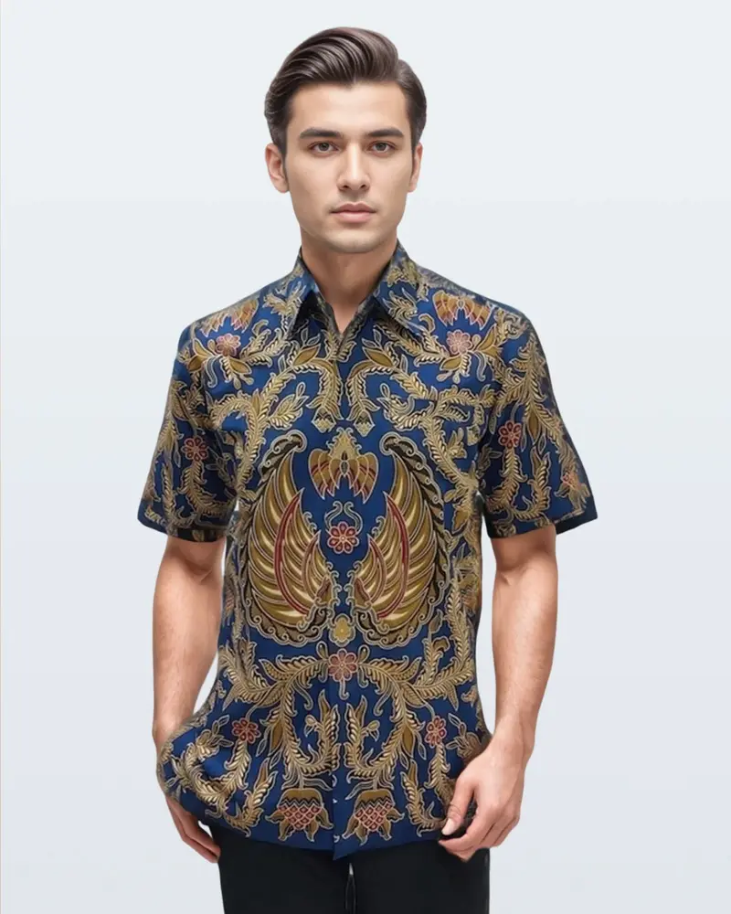 Kemeja Batik Lengan Pendek Gurdo Latar Rambat Biru