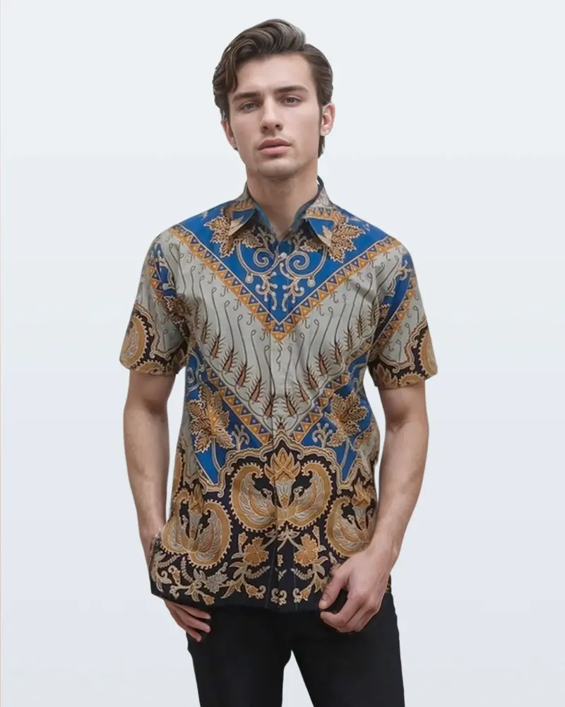 Kemeja Batik Lengan Pendek Lar Parang Godong – Abu Abu