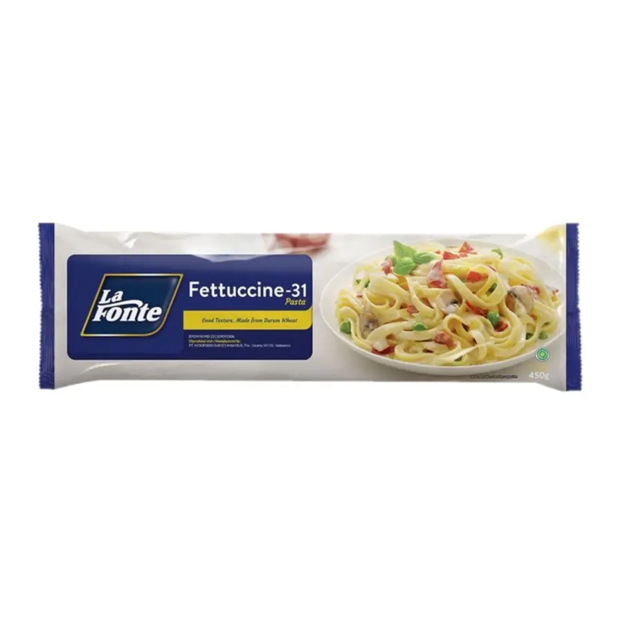 La Fonte Fettuccine merupakan pasta Fettuccine yang mudah untuk disajikan. Pasta ini tidak menggunakan pewarna dan bahan pengawet sehingga sangat aman untuk di konsumsi. Nikmati kelezatan makan pasta La Fonte Fettuccine dengan varian saus siap saji dari La Fonte.