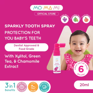 Momami Sparkly Tooth Spray 20ml – Semprotan Perawatan Gigi Anak (Grape/Peach/Honeydew) – Oral Care