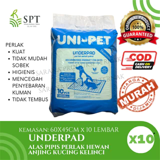 PERLAK 60X45CM 10 LEMBAR UNDERPAD ALAS PIPIS UNIPET ANJING KUCING KELINCI SEMUA HEWAN TRAINING PAD