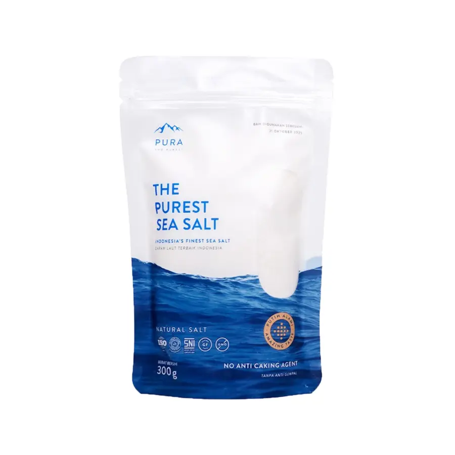 Pura Sea Salt adalah Garam Natural (Unrefined Salt), tanpa melalui proses bleaching, tanpa anti caking dan bahan tambahan kimia lainnya. Diproses secara natural untuk menjaga kandungan mineral yang penting untuk tubuh serta memiliki kandungan natrium yang lebih rendah.
