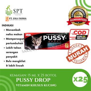 PUSSY DROP 15 ML x 25 BOTOL KEMASAN 1 DUS HARGA GROSIR EKA FARMA VITAMIN KUCING TERBAIK UNTUK IMUN DAN BULU YANG MENGKILAP