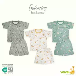 Velvet Junior Setelan Baju Anak Kancing Pundak Lengan Pendek Celana Pendek Motif Terbaru 3 Set