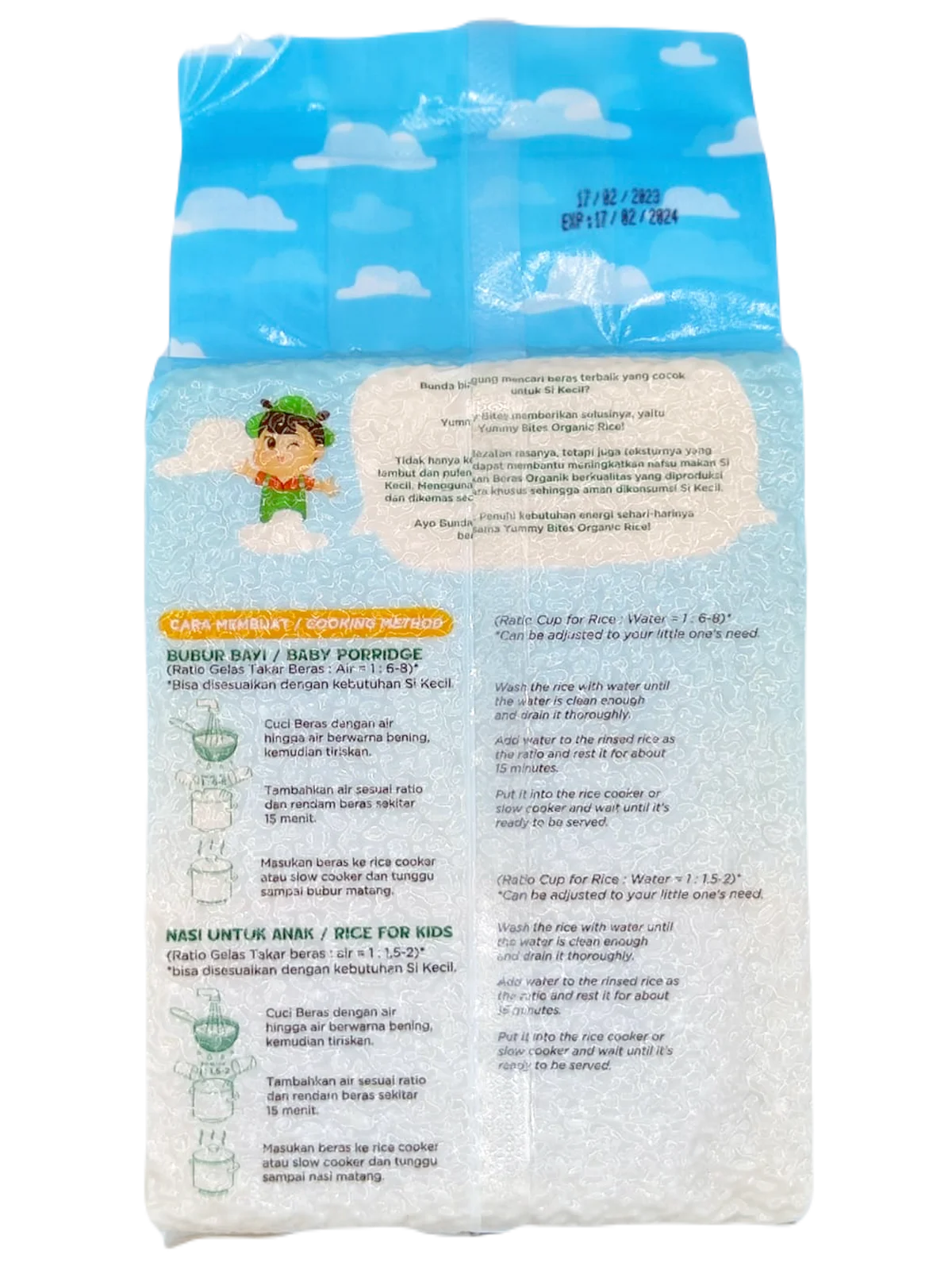 Yummy Bites 1kg Beras Organik untuk Bayi dan Anak Tanpa Pewarna Non GMO Tekstur Lembut 100% Natural